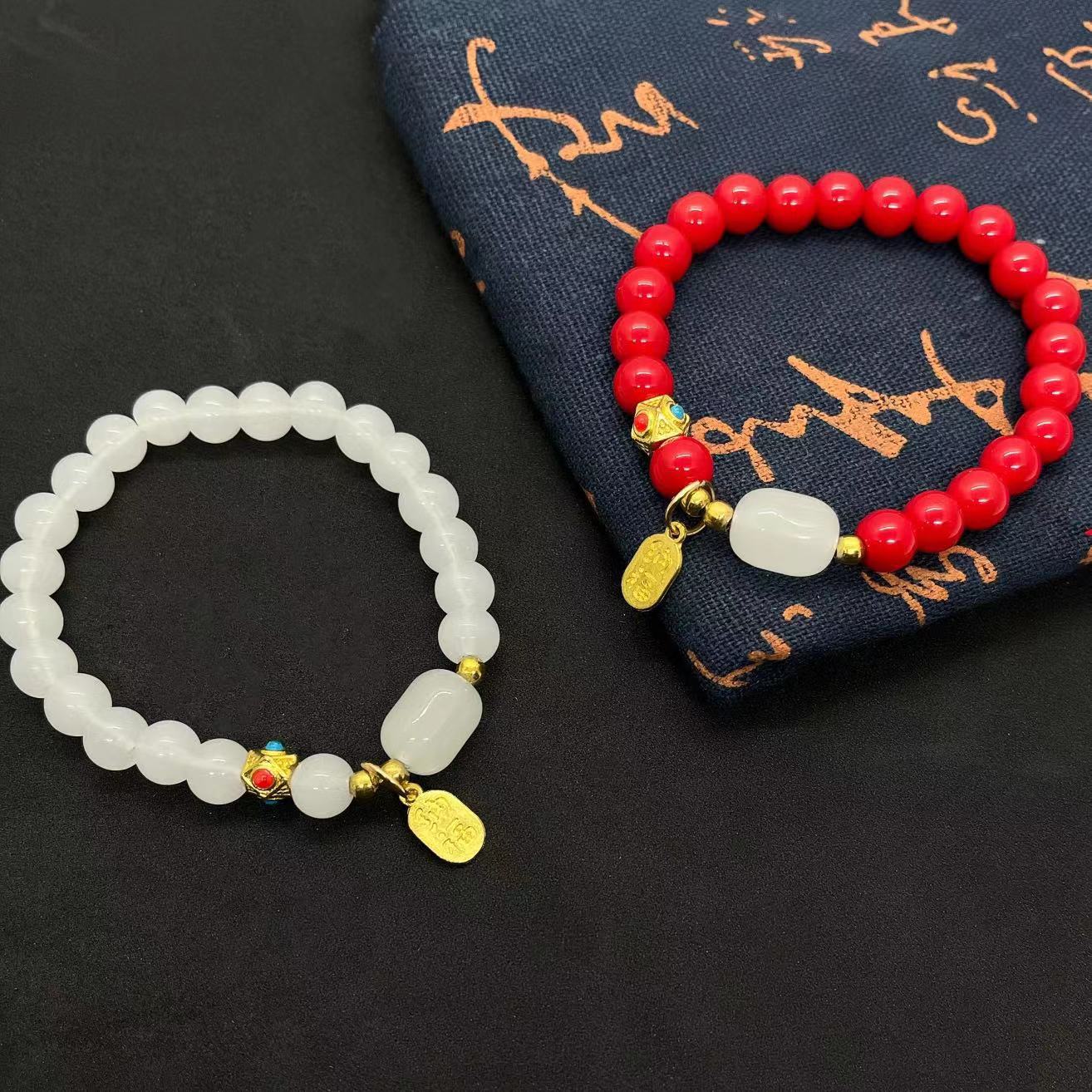 復古本命年は朱砂手串をまねて平安納福白玉ブレスレットを生放送します。