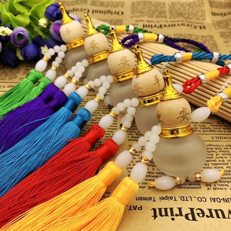 レトロなチベット式の六字の真言の十色の色絵の小さい回転筒の色のフリンジの編むキーホルダーの装飾のペンダントの卸売り