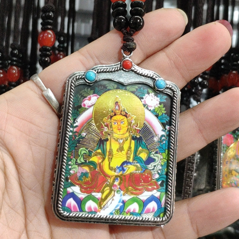 唐卡仏牌男黄財神ペンダント男女印刷烏箱携帯ストラップ文殊菩薩五爺ネックレスバッチ