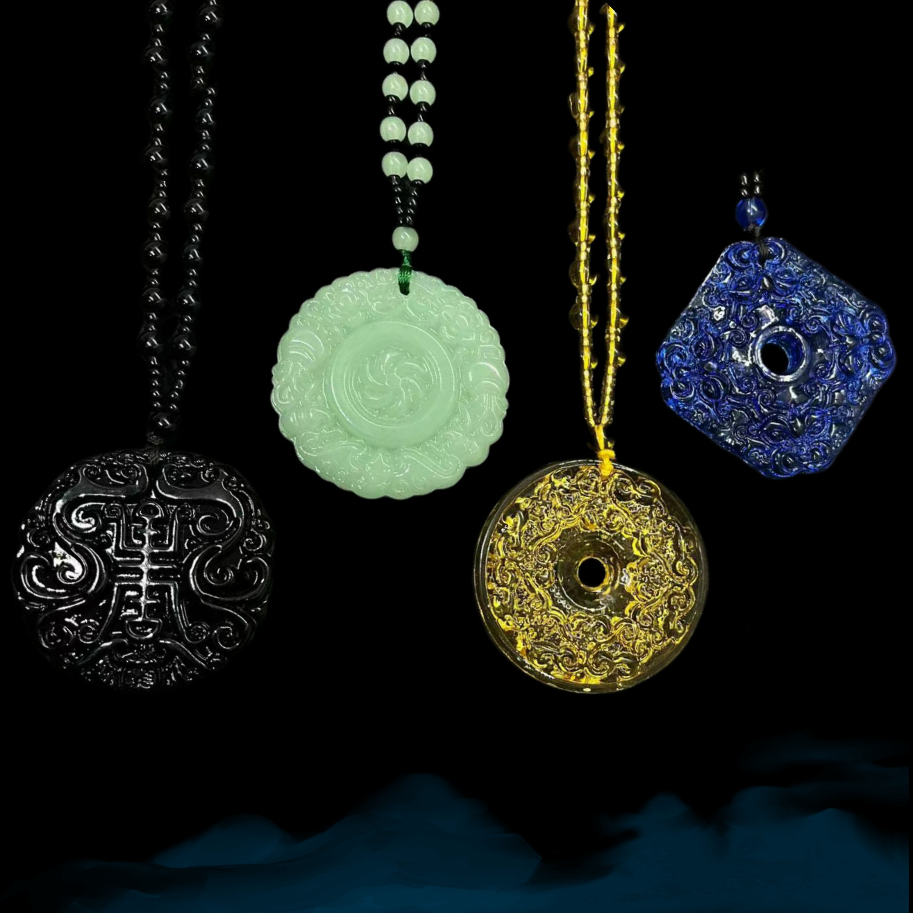 新中国式の平安ペンダントは碧玉瑠璃の復古両面四方来財のネックレスに似せています。