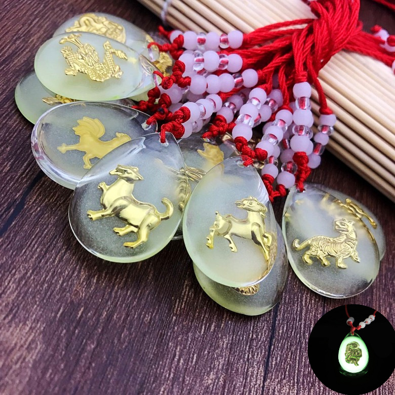 本命年ペンダント十二生肖ネックレス男女金箔入り児童学生編み赤紐アクセサリーネックレス卸売り
