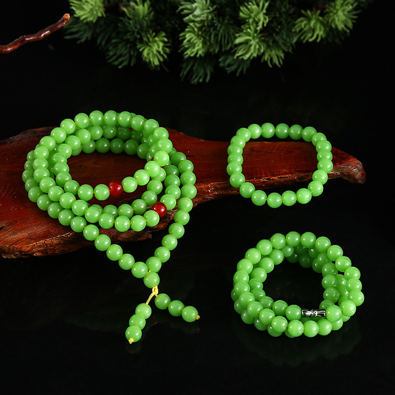 古法ネパール108個の仏珠のブレスレットは青々としています。