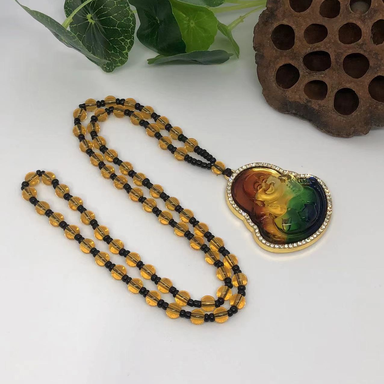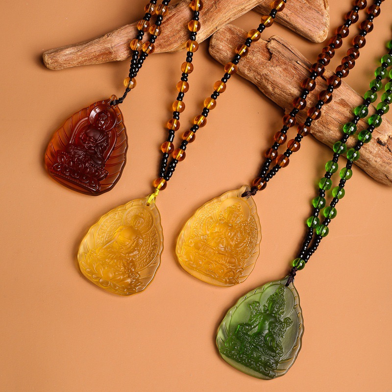民族風の色の瑠璃はダイヤモンドのネックレスの仏陀の三彩の仏陀の公のペンダントの木の葉の毛の服のチェーンを入れて小さい贈り物の卸売りを生放送します。