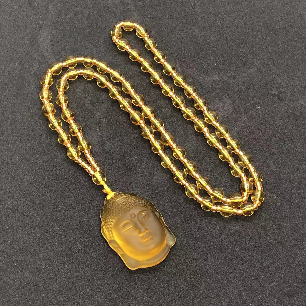黄水晶の艶消しの仏陀の頭のペンダントの仏陀のネックレスの寺院の縁を結んで立体感があります。