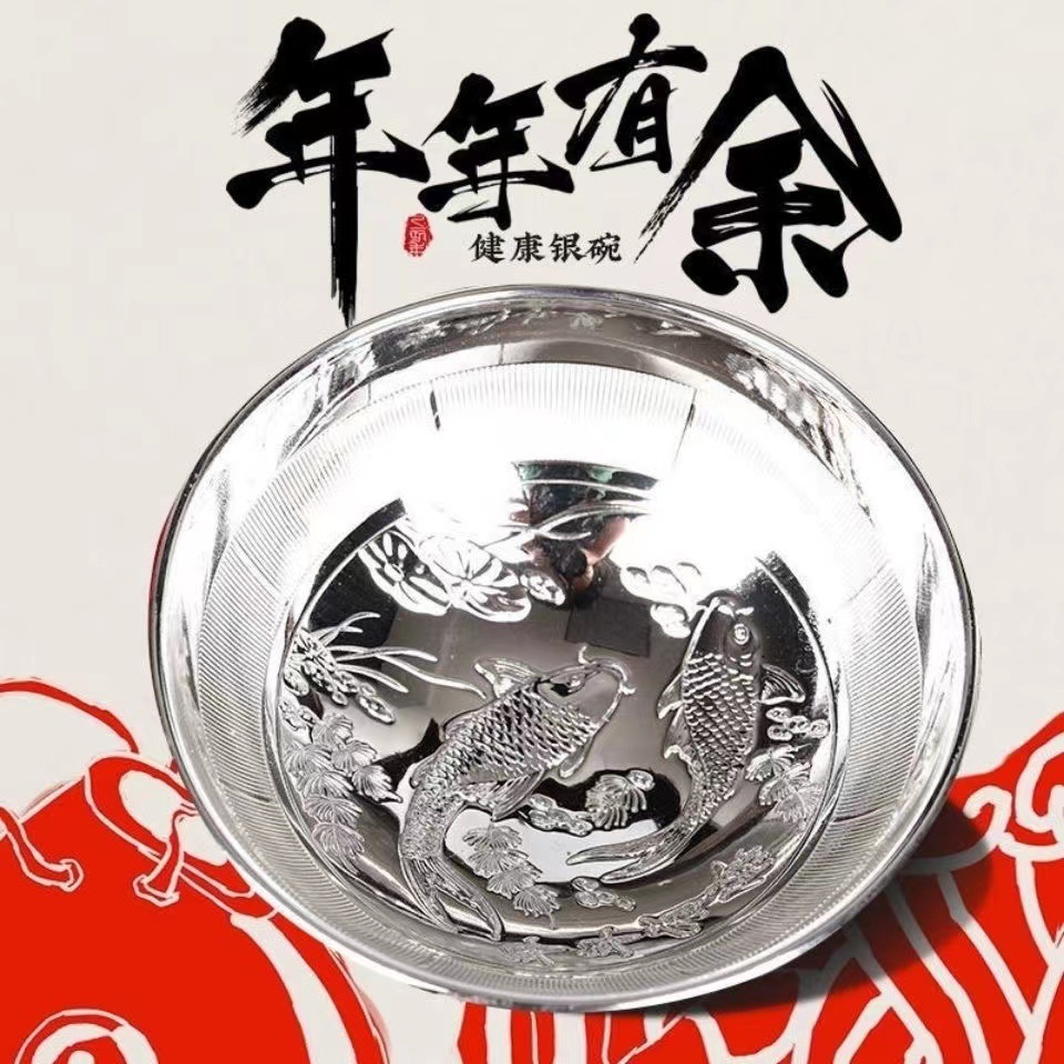 銀の碗の箸の3つのセットの五福の扉の碗の箸のスプーンのセットは贈り物を認めます。