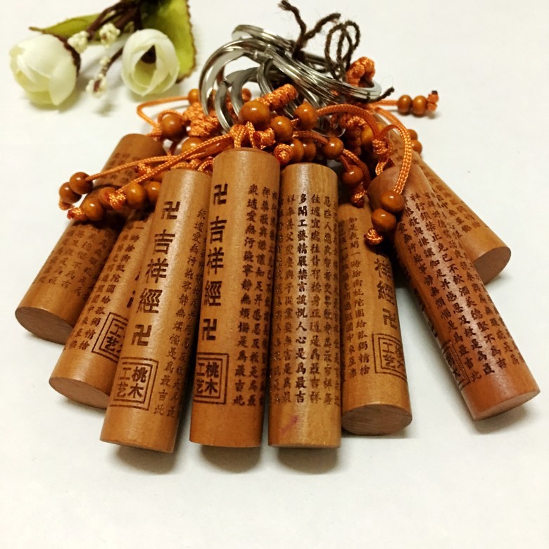 丸い桃の木のキーホルダーは平安吉祥事に掛かって彫刻してぼんやりしています。