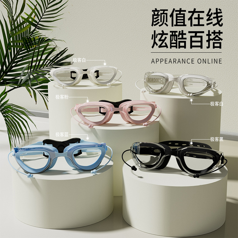 クロスボーダーハイビジョン水泳鏡男女通用競技タイプ水泳メガネシリコン防水水泳装備水泳鏡セット