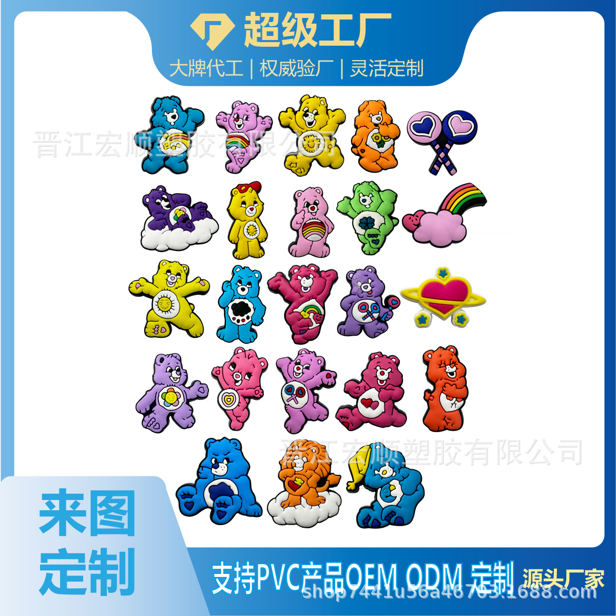 かわいい漫画虹熊シリーズ洞靴花靴バックル個性ソフトゴムDIYガーデン靴装飾バックル部品