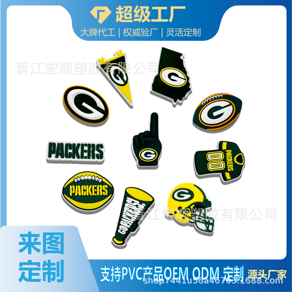 ラグビー緑湾包装工隊洞靴自主DIYアクセサリー靴花靴バックルPVCソフトゴムラグビー靴花