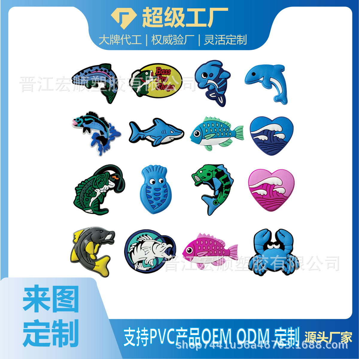 アニメの面白い魚シリーズの穴の靴の花の靴の帽子の装飾の部品のPVCの柔らかいゴムは装飾を取り外します。