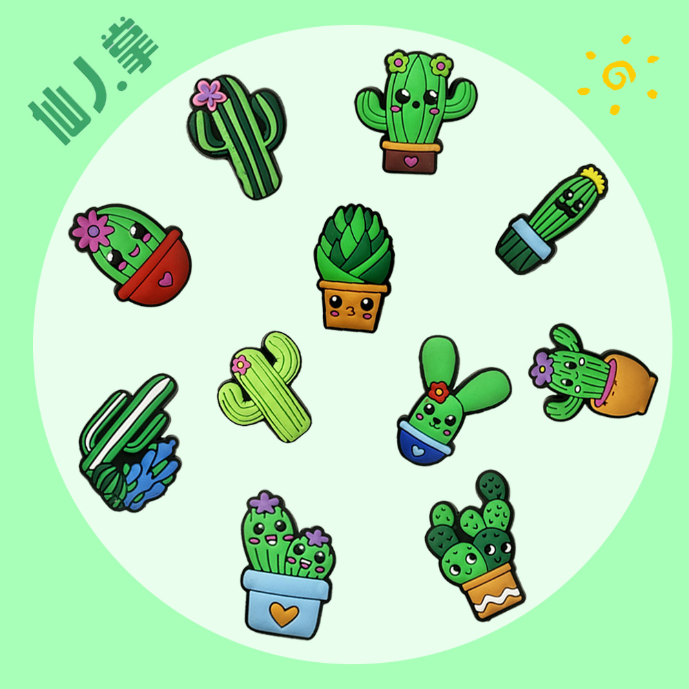 植物シリーズの漫画サボテンPVCソフトプラスチックのボタンの穴の靴の花の靴のボタンの装飾はDIYできます。