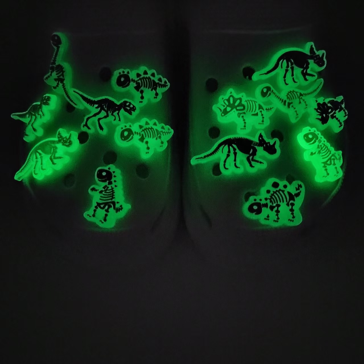 新型個性夜光靴花靴バックル恐竜洞靴装飾部品PVC蛍光花靴ブレスレット装飾