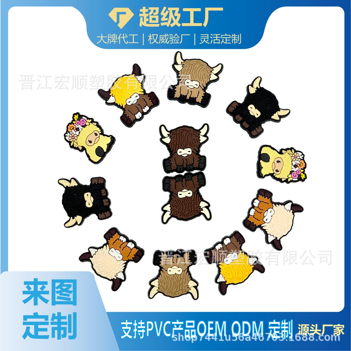 スコットランド高地の牛の靴の花の穴の靴は靴の装飾品のかわいい漫画の動物の靴の花の靴のボタンを掛けます。