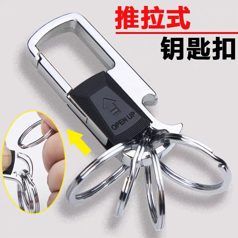 多機能メンズウエストバックルプッシュプルスイッチカーキーホルダーマルチリングペンダント紛失防止ストラップ栓抜き付き