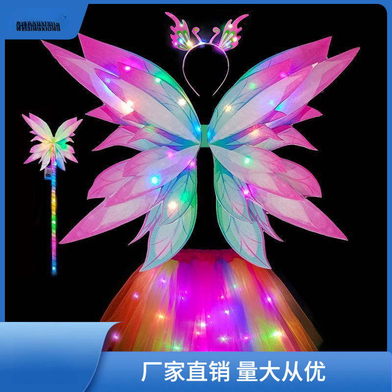 発光ヘアフープヘアアクセサリー花の妖精の羽小道具バックプリンセスリトルマジックフェアリーセットガールホリデーチェーンバランスチェーンバランス