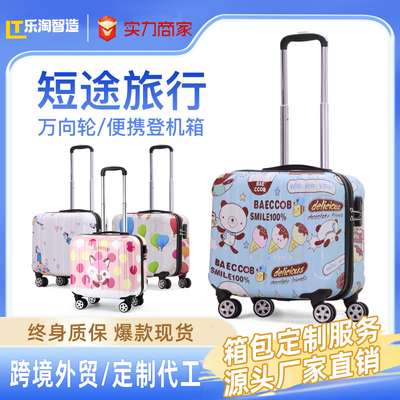 国境を越えたカスタマイズされた小型スーツケース、チェックイン不要、女子学生向け、軽量トロリー、旅行用パスワード付きスーツケース、18inch 機内持ち込み可能スーツケース