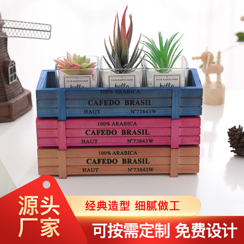 レトロ木製多肉木箱置物家庭用長方形作り古いゼカ多肉植物セット木製植木鉢