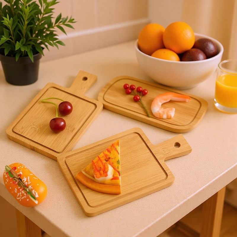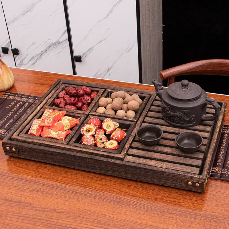 桐の木の復古は古いトレーの7セットの家庭用長方形の小さい果物の皿の実木のお菓子のナッツのお茶のトレーを作ります。