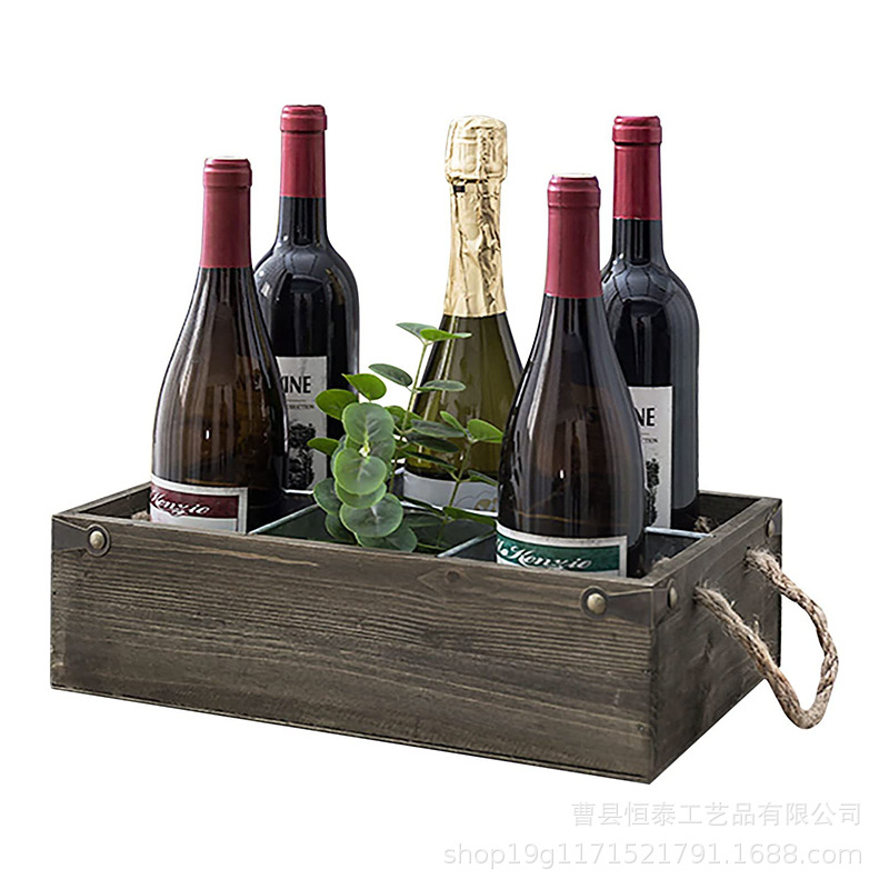 実木酒瓶箱六槽レトロビール板条箱アメリカ田舎ワイン収納木箱