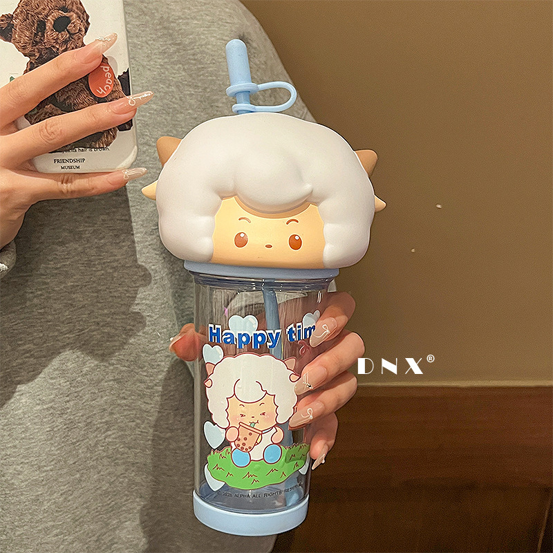 子供や学生向けのヒーリングシープとグレーワルフの共同ブランドの大きな水カップ、トリタンストローケトル、ポータブルウォーターカップ