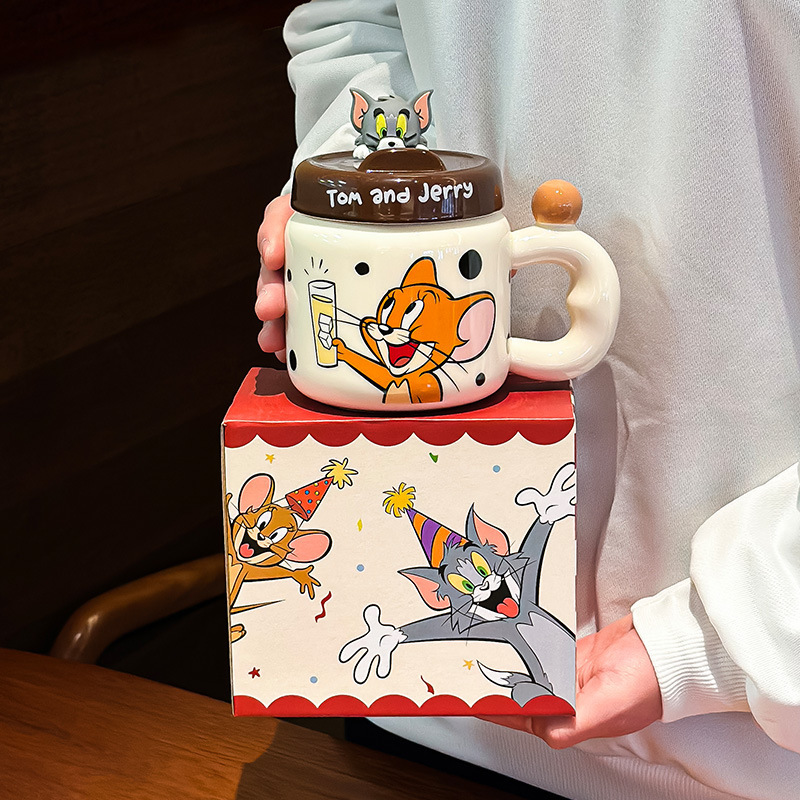 猫とネズミのマグカップ蓋付き陶磁器コップ蓋付き女神祭プレゼントカップルコップ寮家庭用コップ