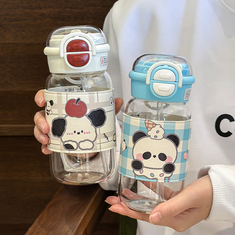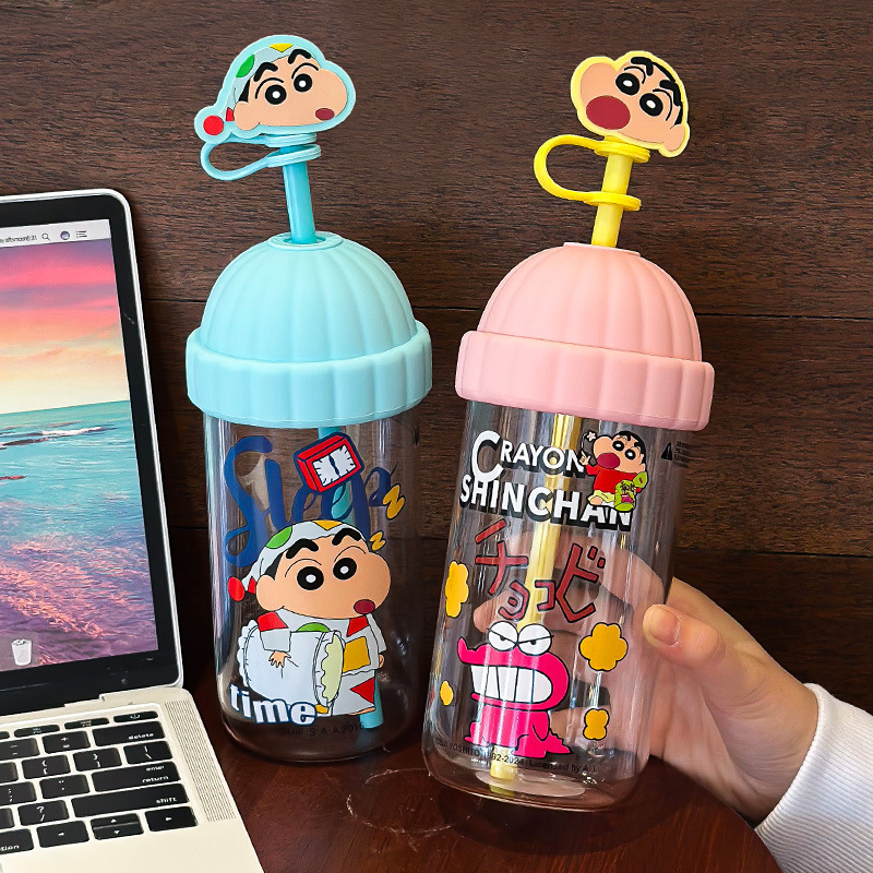 クレヨンしんちゃんコラボ ストロー付き水筒 新型2025 女の子向け 高颜值 高硼珪酸ガラス製 耐熱カップ