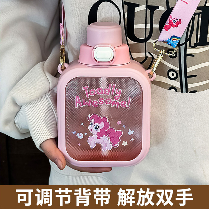 ポニーポーリーストローカップ2024新型四角いコップかわいい学校専用児童水筒女子高颜値