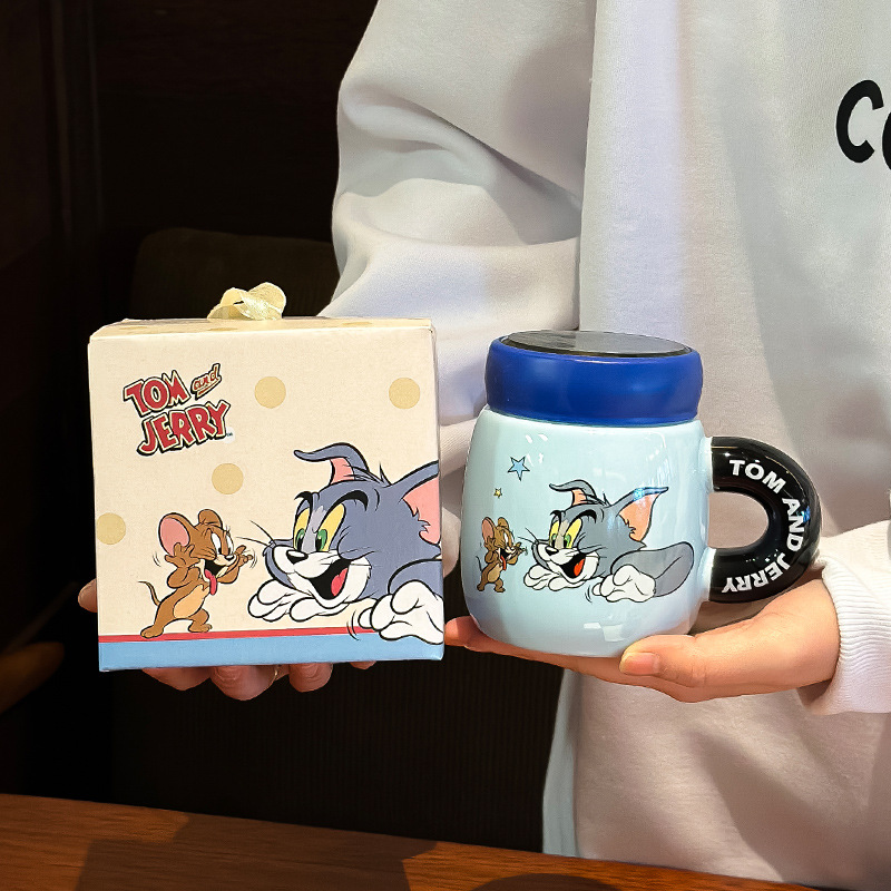 猫とネズミのマグカップの女子学生2024新型高颜値水杯オフィスコーヒーカップ蓋付き誕生日プレゼント