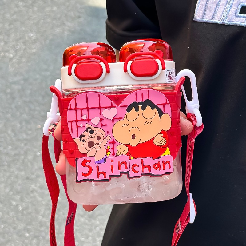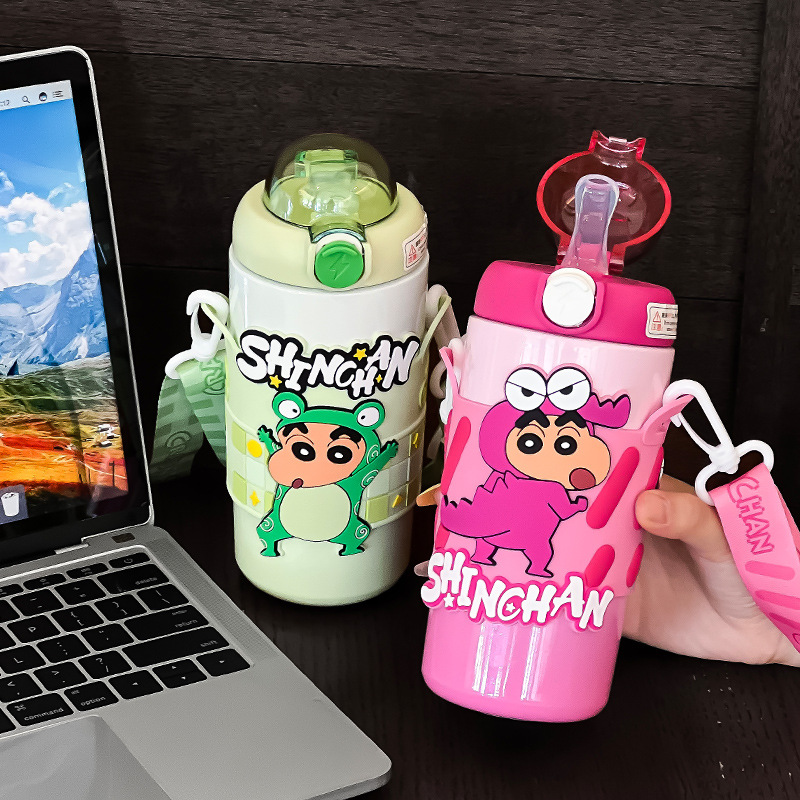 クレヨンしんちゃん子供用コップ男の子女の子学校用ストローコップ屋外では、携帯幼稚園の水筒を斜めにかけることができます。