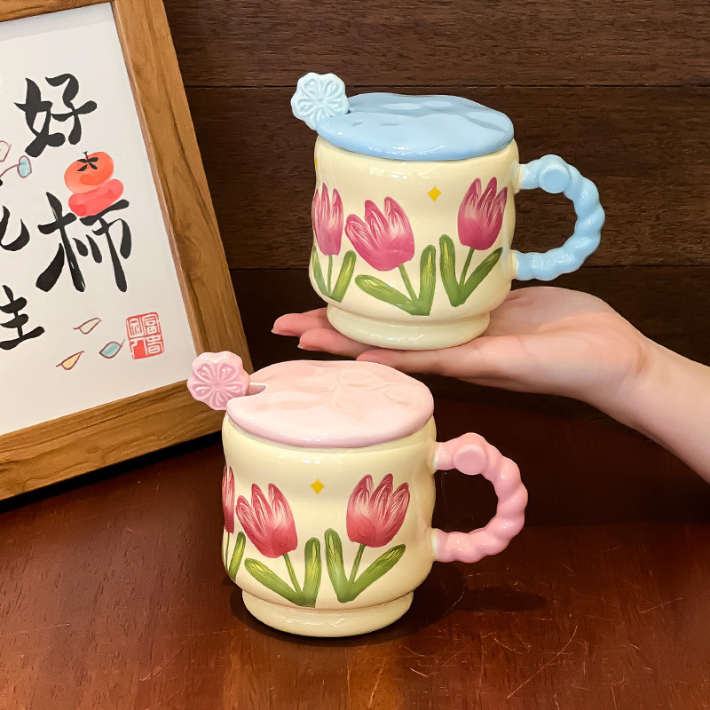 高颜値チューリップカップかわいいセラミックマグカップは男女の親友の誕生日プレゼントを実用的にプレゼントします
