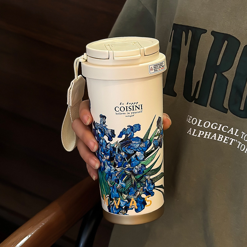 新型ゴッホストロー保温カップ女子学生2024新型高颜値随行コーヒーカップ誕生日プレゼント