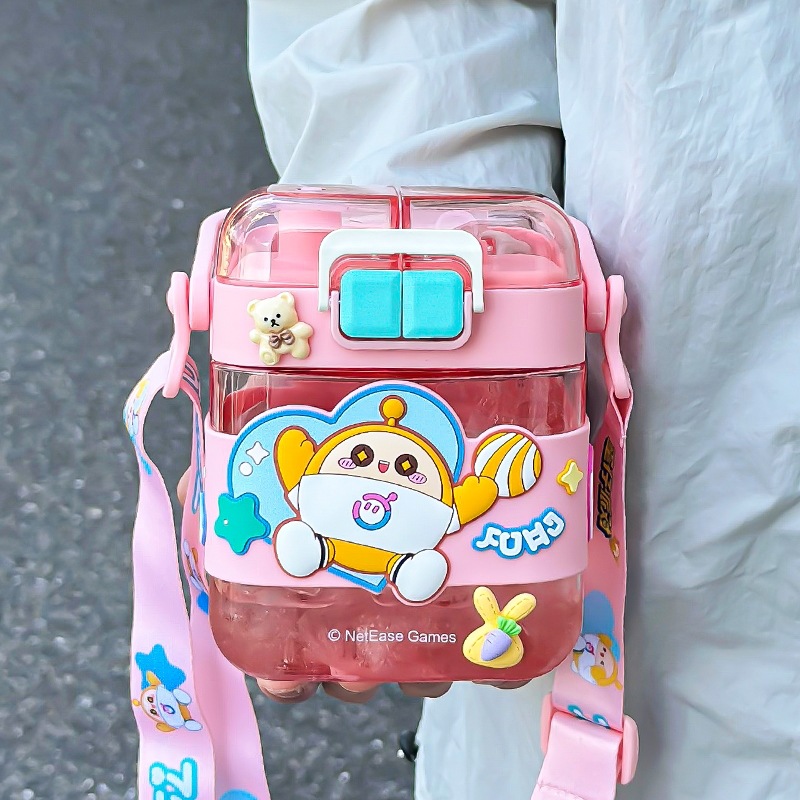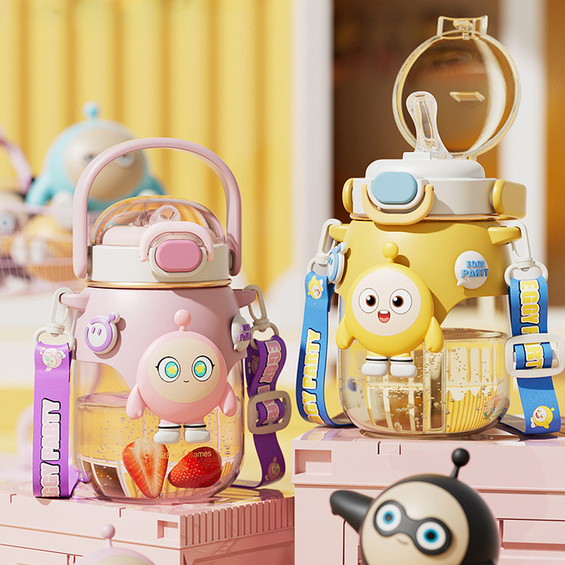子供の随行ストローカップネット紅茶倉庫プラスチックカップお茶漏れカップ付き大容量カップ付き高颜値カップ