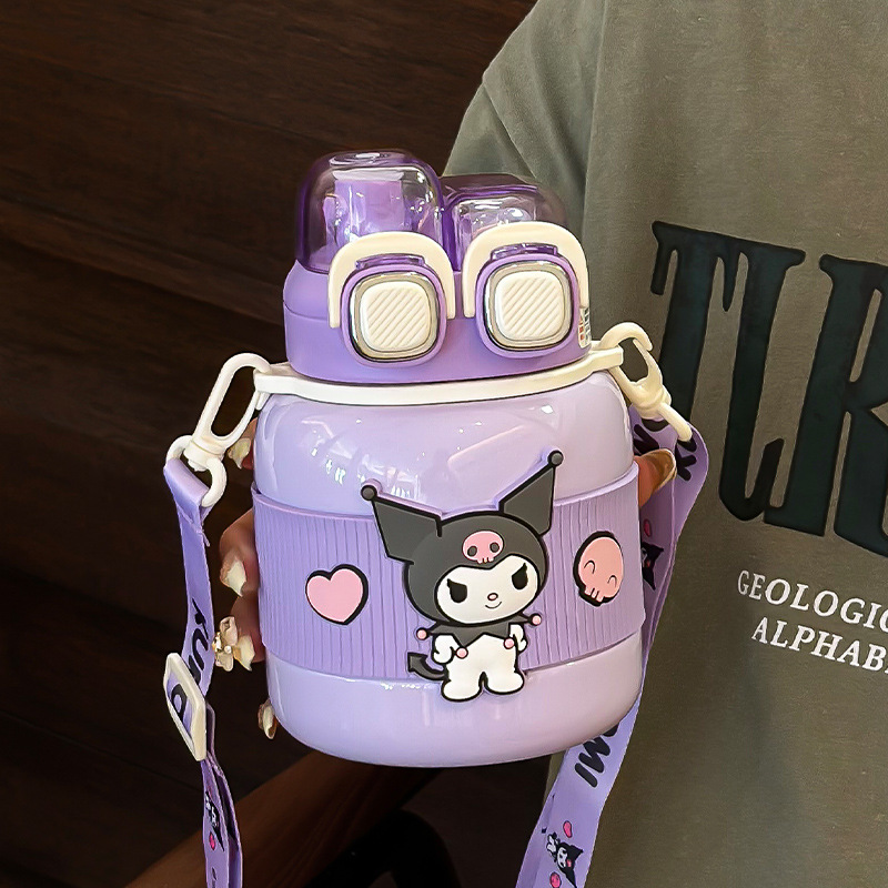 サンリオ・クロミ児童保温カップ2024新型ストロー付きカップ女子かわいいダブルカップ携帯