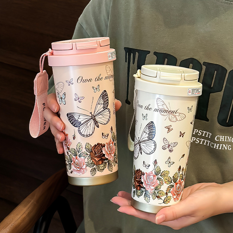 軽くて豪華な高級感ストロー保温カップの女子学生2024の新型の高い顔の値はコーヒーのコップの誕生日のプレゼントに随行します。
