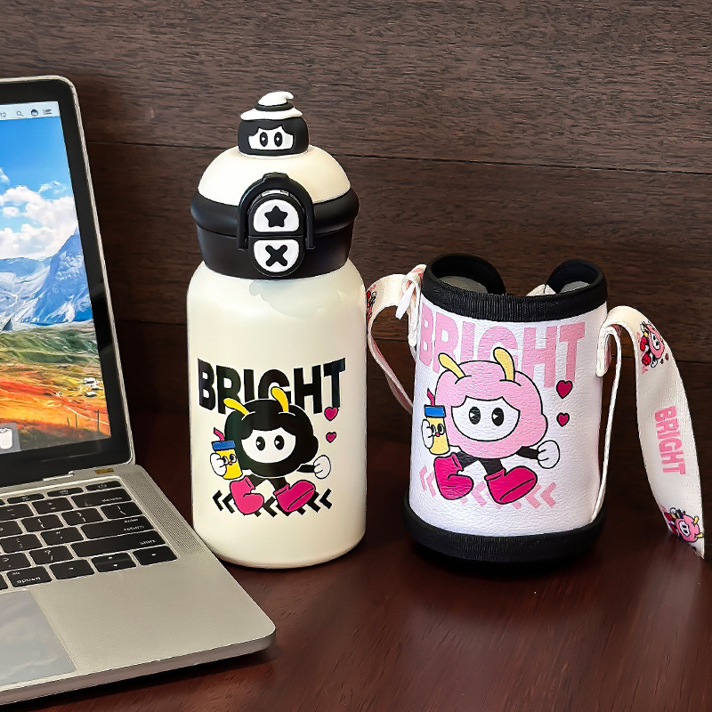 美楽蒂保温カップ子供学校用男の子と女の子の二頭コップ学生が可愛いです。