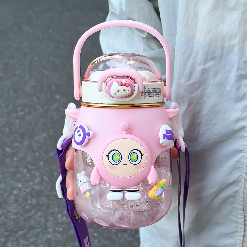 パチャ犬シリーズ女子学生高颜値夏携帯プラスチックケトルかわいい大容量ストロー付き子供カップ
