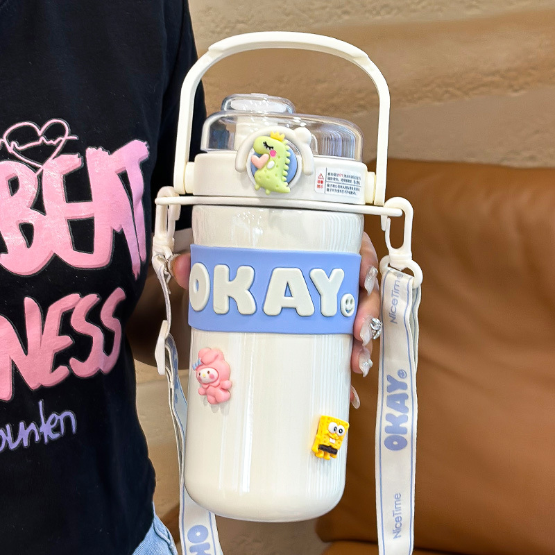2023新型316ステンレス保温カップ二重飲料カップ高颜値学生斜め掛け大容量ストローカップ