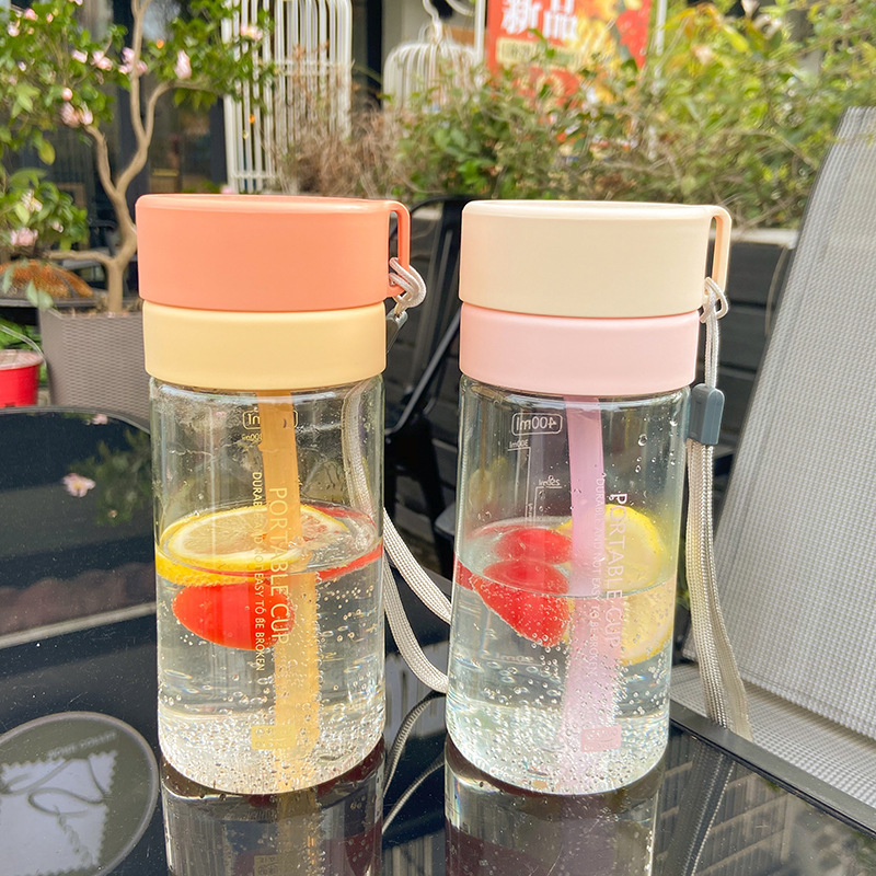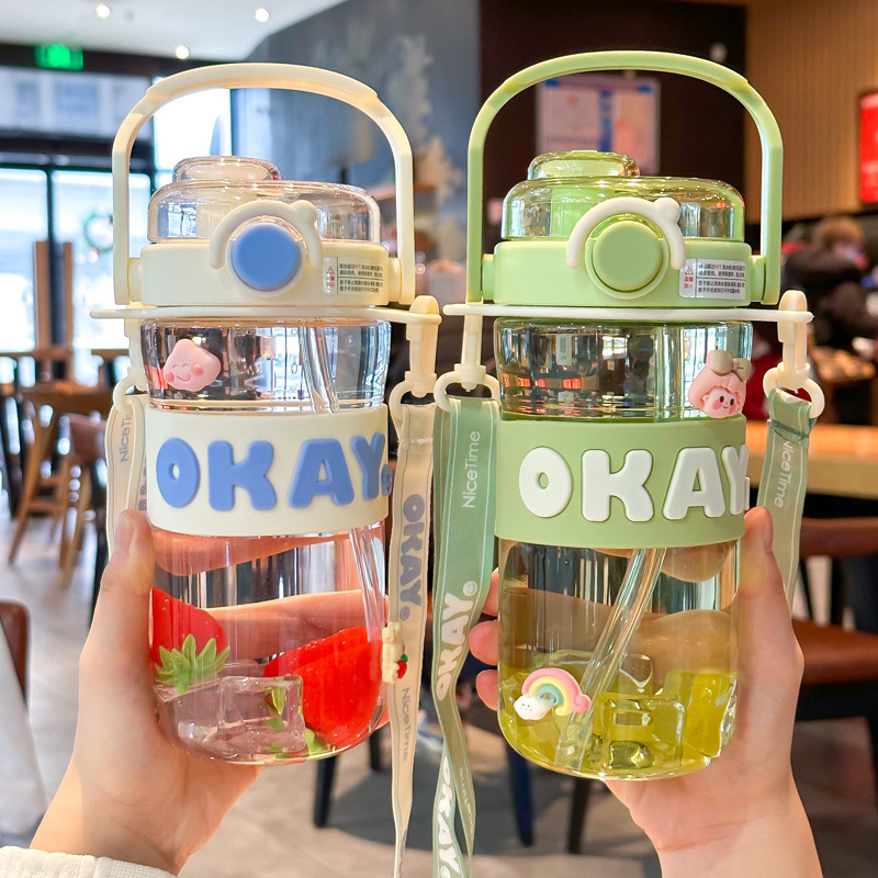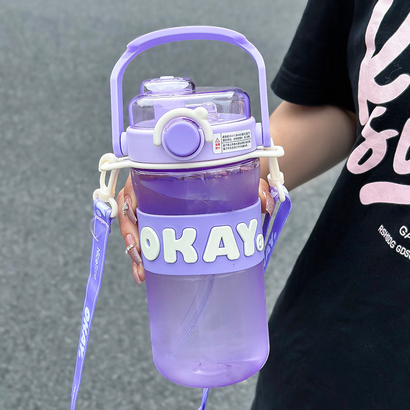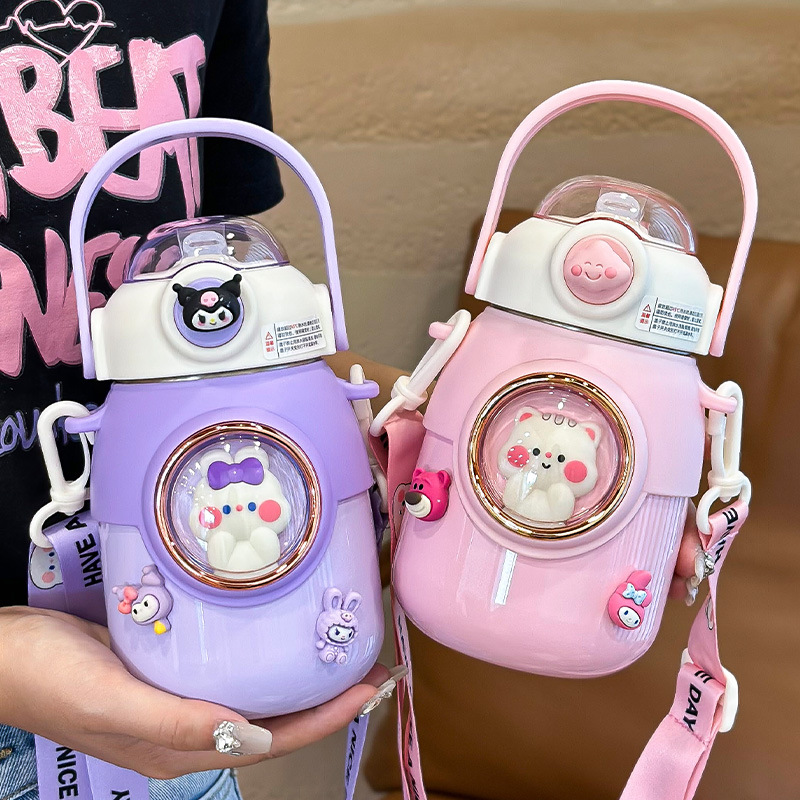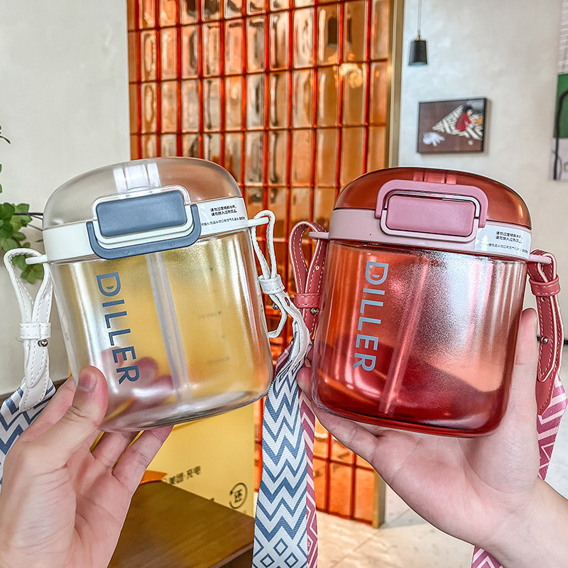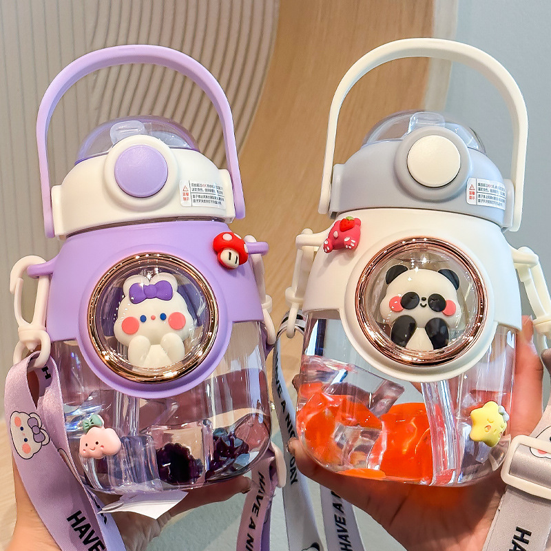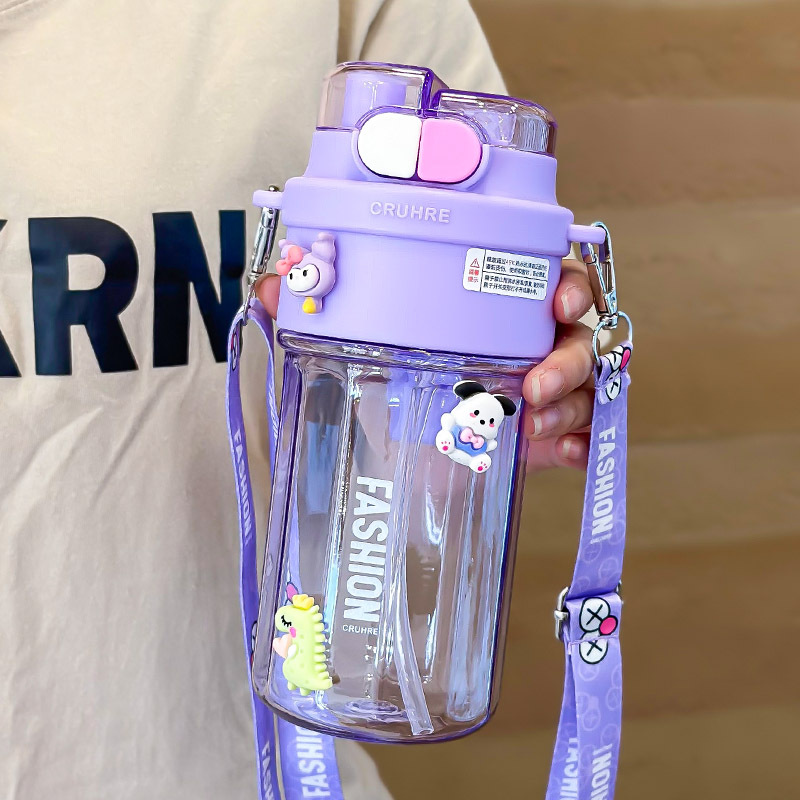 ネット赤子供プラスチックカップ女の子かわいい大容量ストローストラップカップ高颜値大腹カップ学生学校