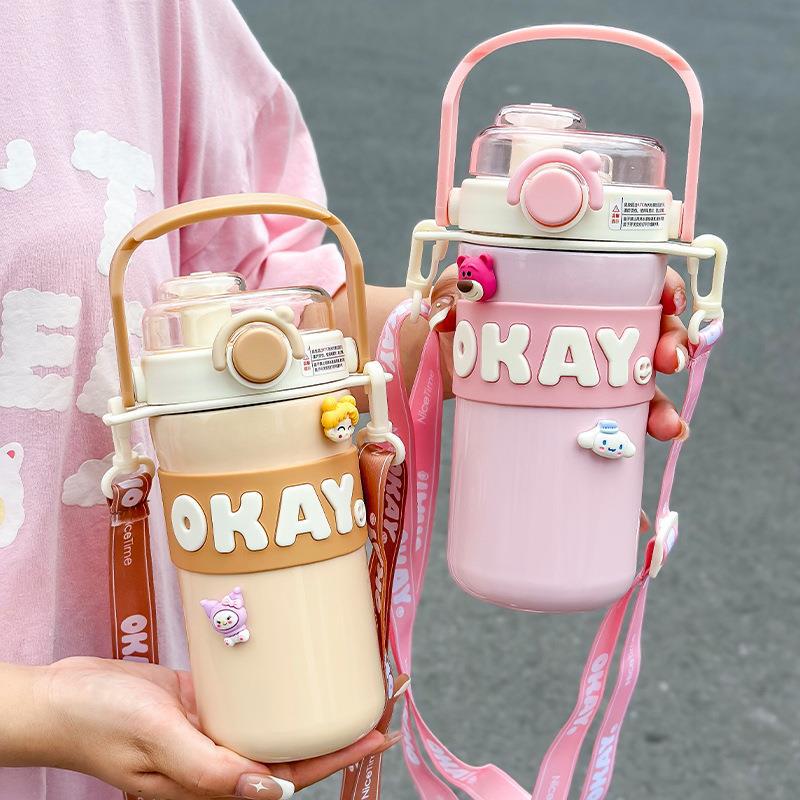 保温カップ女子高颜値316ステンレスストローカップ斜めショルダーダブルカップ2023新製品