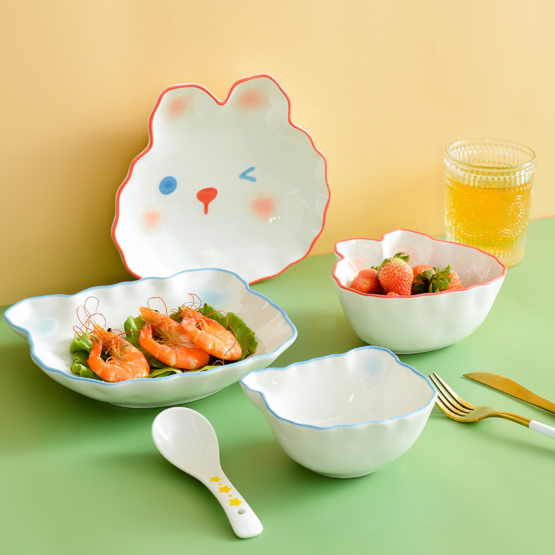 日本式のかわいいウサギの陶磁器の茶碗の食事の皿のアイデアの子供の動物の型の食器の料理の皿のネットの赤い食事の皿