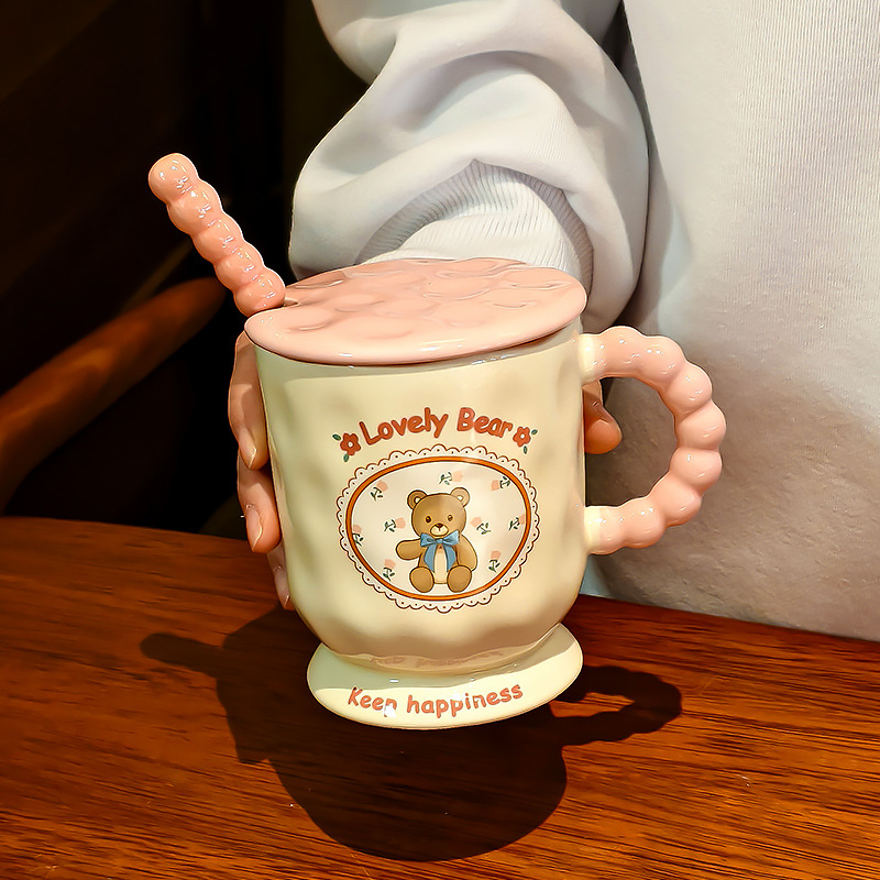 蓋付き猫マグカップ、セラミックカップ、かわいい女の子の誕生日プレゼント、子犬とクマ、見栄えの良いオフィスウォーターカップ