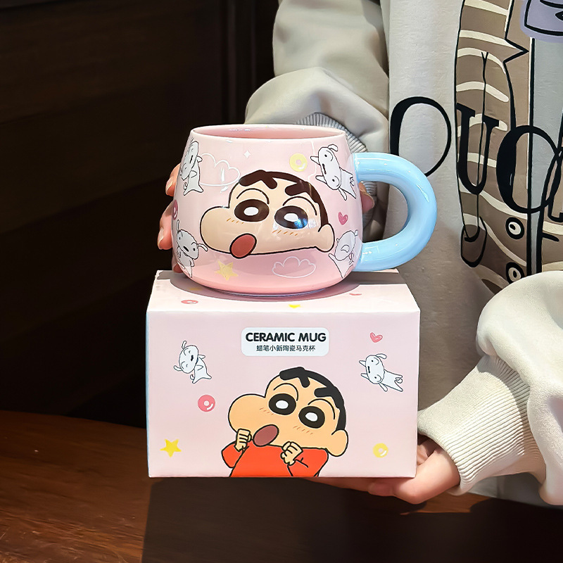 クレヨンしんちゃん高颜値セラミックマグカップ大容量カバー付きオフィスカップ子供クリエイティブ誕生日プレゼント