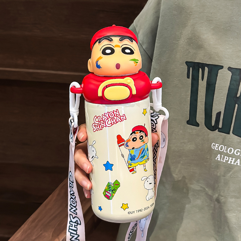 かわいいクレヨンしんちゃんのコップの保温コップの女性の2024の新型のストローコップの学生の学校の専用の携帯コップ