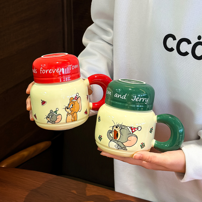 トムとジェリー セラミックカップ レディース 2024年新作 高見えカップルウォーターカップ ホームオフィスマグ 蓋付き