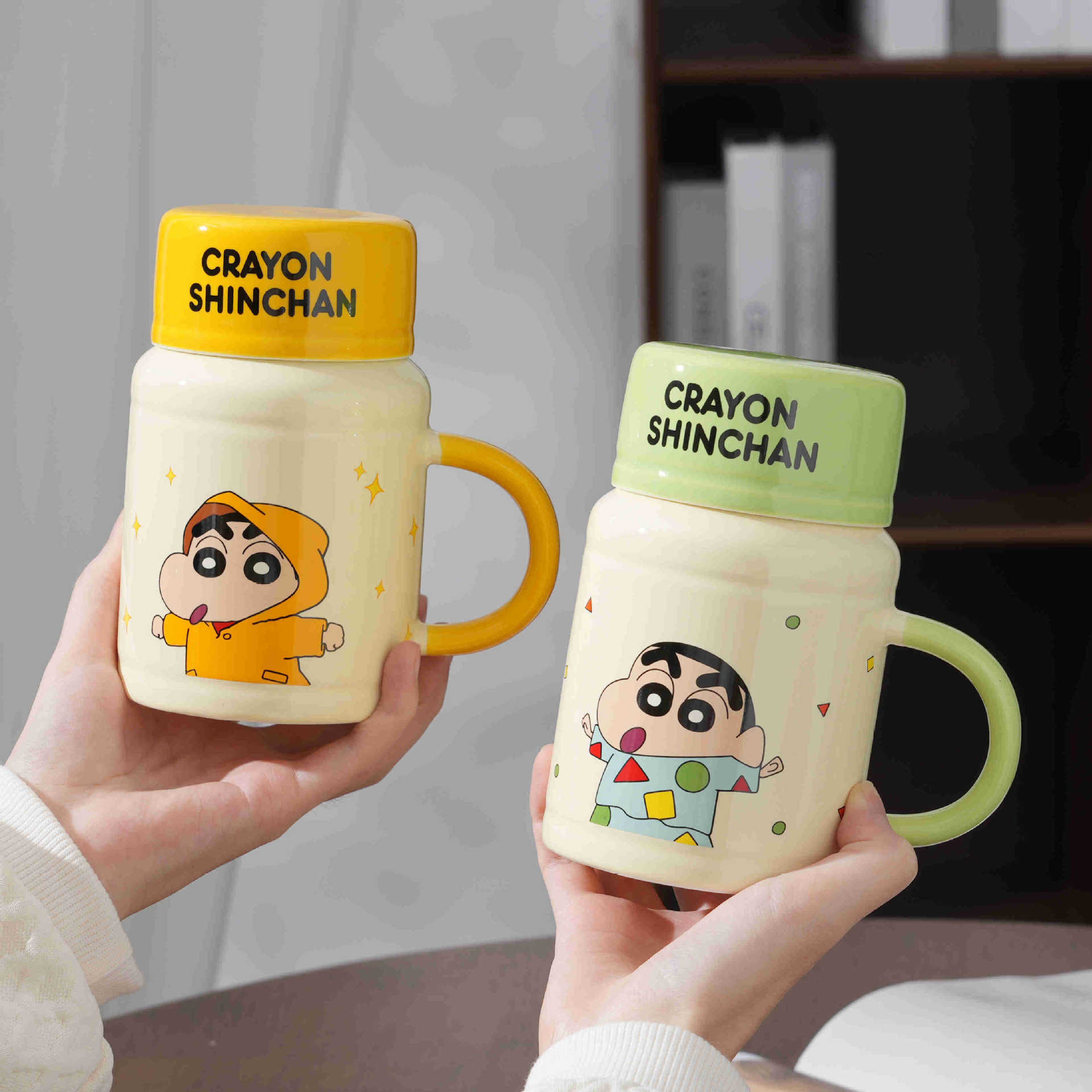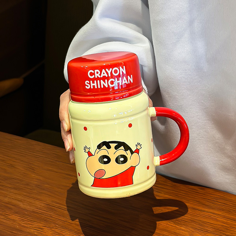 クレヨンしんちゃん漫画セラミックマグカップ大容量蓋付きオフィスカップかわいいコーヒーカップミルクカップ