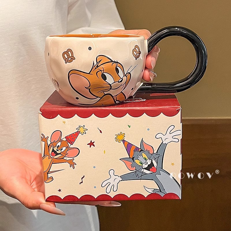 猫和老鼠卡通手柄马克杯女生办公室陶瓷咖啡杯子家用早餐燕麦水杯