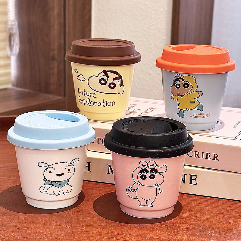 クレヨンしんちゃんマグカップ蓋付きコーヒーカップホーム 2025 新しい漫画かわいいセラミックミルクカップ