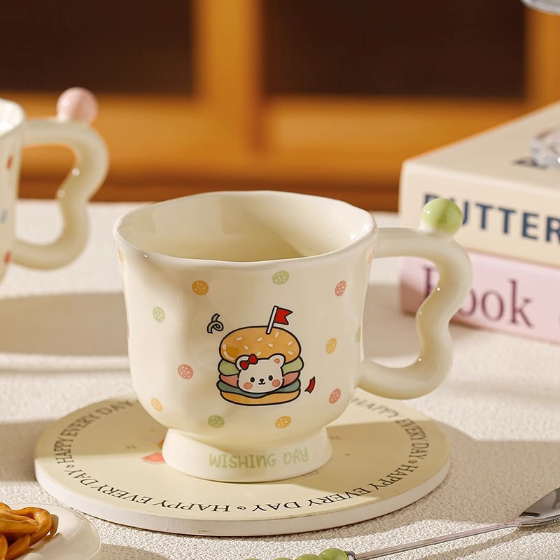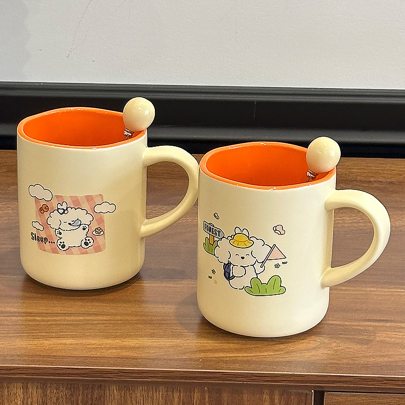 漫画マグカップ子犬セラミックカップクリーム风スプーン付き家庭用カップル朝食カップコーヒーカップ诞生日プレゼント