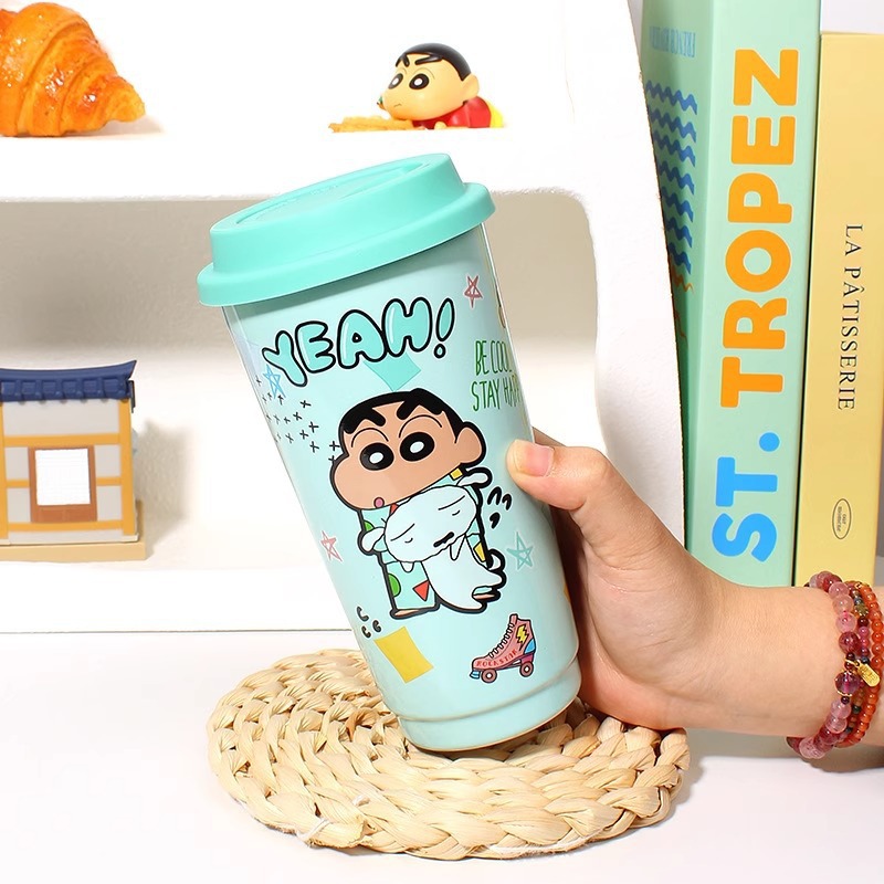 クレヨンしんちゃんセラミックカップ軽豪華風高級感学校オフィス男女カップルカバー付き大容量マグカップ