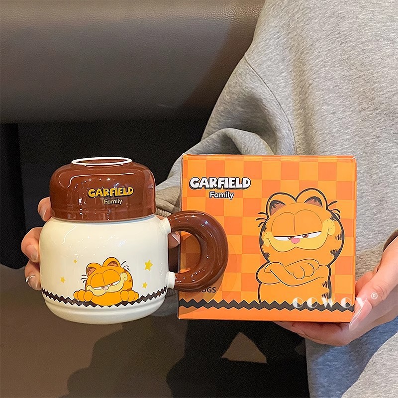 ガーフィールド共同ブランドセラミックマグ蓋付きカップルウォーターカップ新しいカップ家庭用飲料水オフィスコーヒーカップ